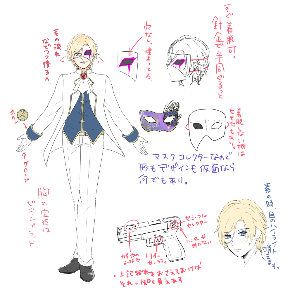 仮面コレクター。今一番のお気に入りは左目を覆うマスク。利き目が右の為、左の視界をつぶして銃の照準をあわせるのに使う。